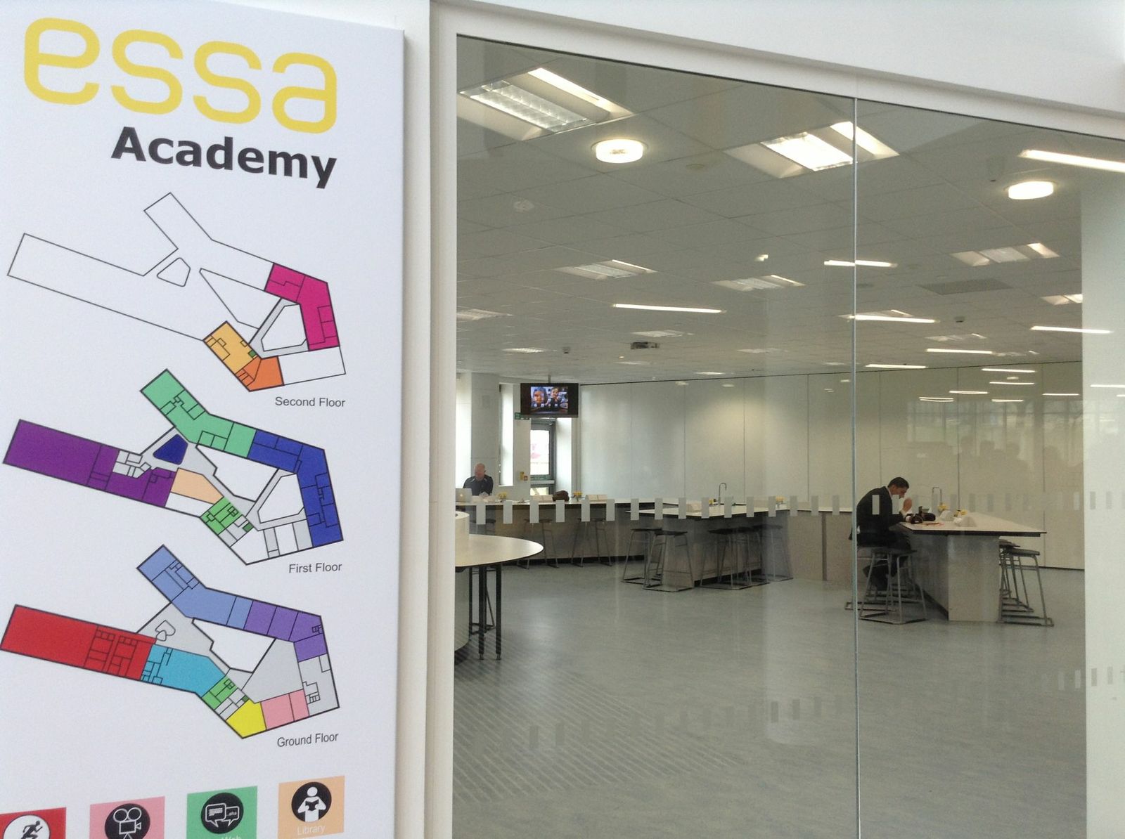 We felt welcomed immediately upon arrival as we walked down the pathway to the entrance and saw welcomes written on the light posts in a number of different languages. We were also impressed with the large monument of a QR code out in front of the school that directed us to the Essa Academy website.