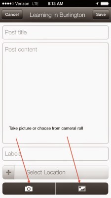 One of the best parts of following all of your blogs is seeing the pictures of your students and the things they are creating! In my opinion, the easiest way to add pictures is to blog from your iPhone or iPad. The blogger app is free and very easy to use!