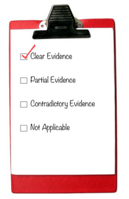 The expectation is that the vast majority of unannounced observations will be comprised of “Clear Evidence” and “Partial Evidence” determinations. The definitions of each determination are below: