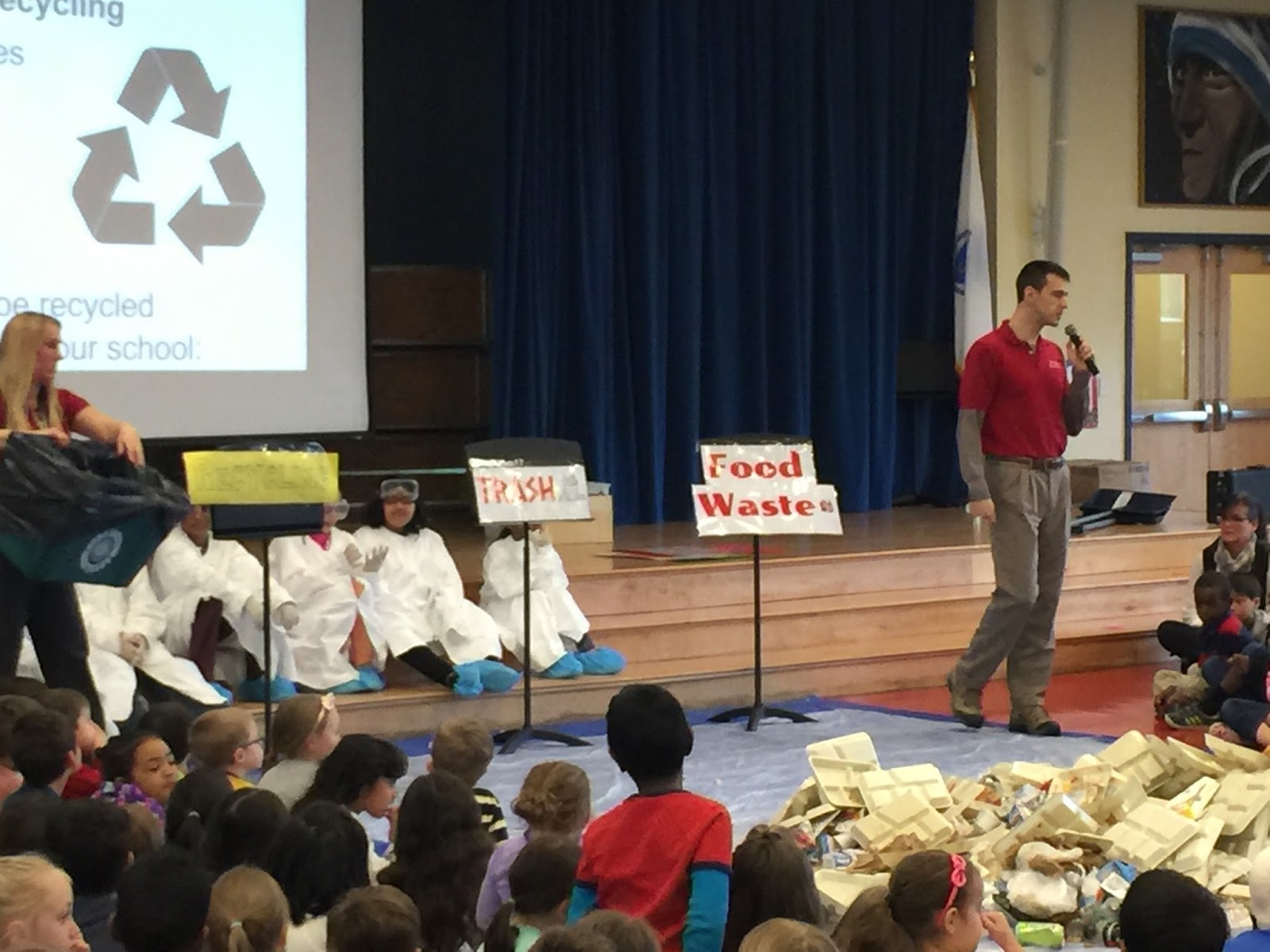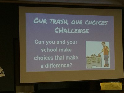The presentation started with the video above and following the video student volunteers were selected by Mr. Musselman to help sort the trash.