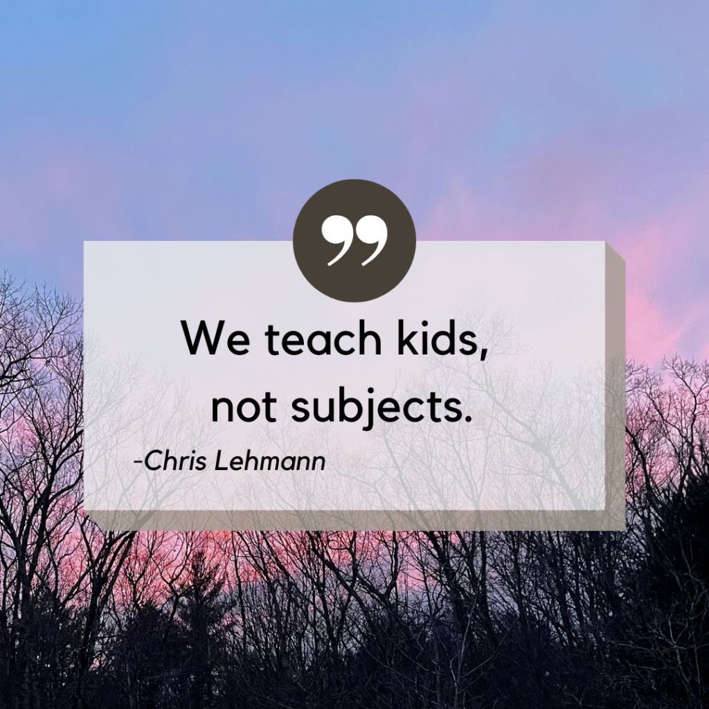I couldn’t help but think of the quote from Chris Lehmann, the phenomenal leader of Science Leadership Academy in Philadelphia who discussed the key factors we need in order to have quality schools and led with the point that “we teach kids, not subjects.”