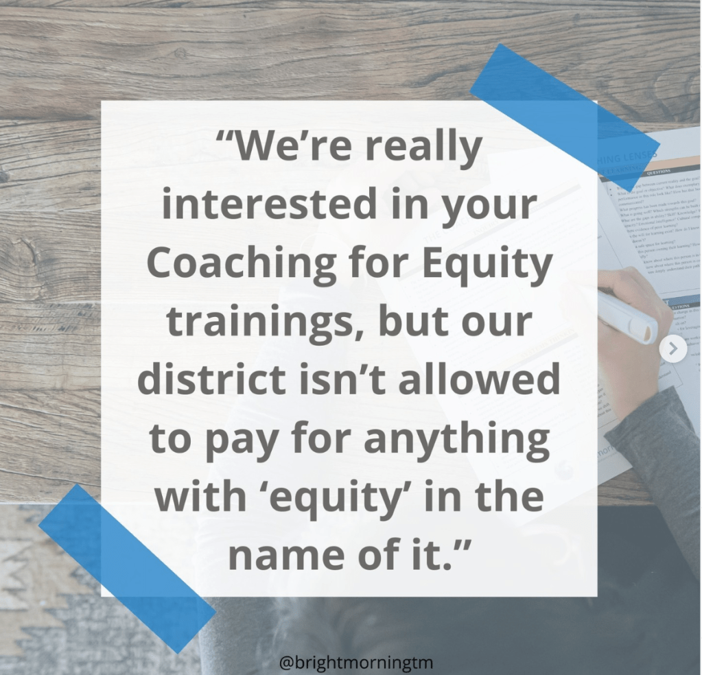 Circling back to the Bright Morning Team’s post, if you find yourself in a district that is suddenly skittish about using the word equity, the Bright Morning Team is offering scholarships for educators in these districts.