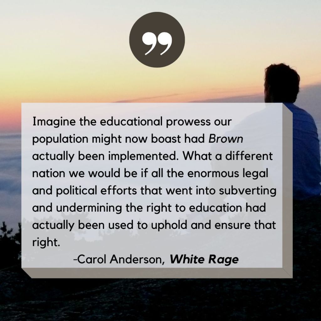 As Carol Anderson points out in her chapter of White Rage titled Burning Brown to the Ground, there was a variety of tactics used to avoid the desegregation of schools. Places like Prince Edward County actually closed schools for four years (1959-1964) rather than comply with Brown. In Louisiana, the governor empowered state police to arrest any federal judge or U.S. marshal who tried to implement Brown. The truth of the matter was noted by Senator James O. Eastland of Mississippi who stated, “We will protect and maintain White Supremacy throughout eternity.” Mississippi Governor Fielding Wright added, “regardless of the consequences.”