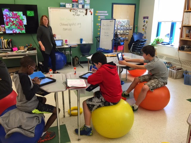 Mrs. Olshaw’s classroom at Memorial School was recently awarded a grant from the Burlington Education Foundation to purchase Stability Balls for the classroom as a replacement for traditional chairs.