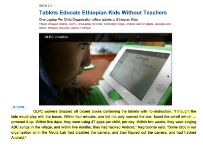Great schools and teachers will share that traits of the great companies that Collins described by “selecting and focusing solely upon the development of a few technologies that are fundamentally compatible with their established strengths and objectives.” They will not fall in love with the newest or shiniest toy that the vendors are peddling. I can’t help but wonder how many millions of dollars have been wasted on Interactive White Boards in schools that did not first consider how they would be used or if they fit well with the goals and objectives of teachers who received them.